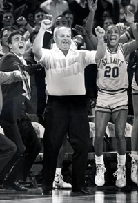 Meyer ranks still ranks fifth on the St. Mary’s all-time scoring list with 1,581 points. Known for his dead-eye accuracy at the free throw line, Meyer came through in the clutch at the charity stripe in 1964, when his two free throws in the final seconds against East Texas State sent the Rattlers to the NAIA National Tournament for the first time in school history. The team went to the tournament a total of 16, including 13 times with Meyer as head coach. He was named Heart of Texas Coach of the Year nine times in his career.